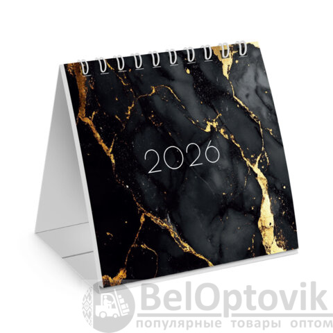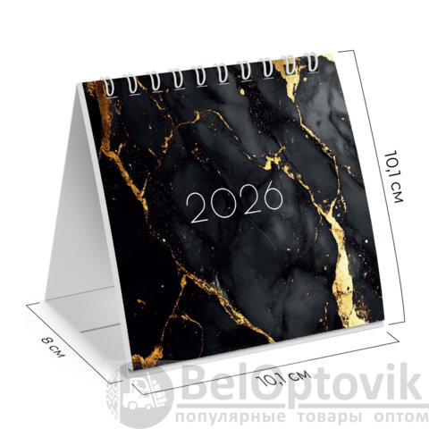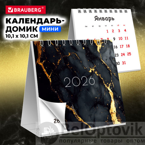 Календарь-домик настольный на гребне, 2026 г., BRAUBERG, 101х101 мм, "Black marble", 117279