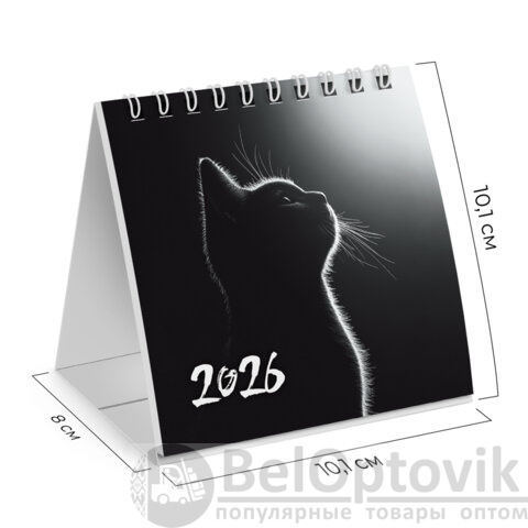 12 листов календарной сетки на мелованной бумаге плотностью 80 г/м2 в 2 краски. Подложка изготовлена из импортного картона плотностью 320 г/м2, обложка – с ярким сюжетным дизайном. Стильный, миниатюрный. Размер – 10,1х10,1 см. Поставляется в индивидуальной упаковке (пакет с липким краем).