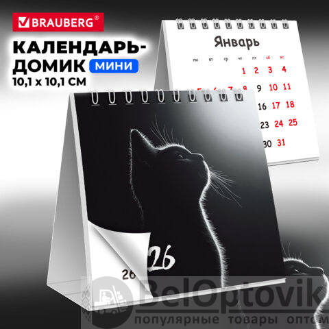 Календарь-домик настольный на гребне, 2026 г., BRAUBERG, 101х101 мм, "Милый котик", 117281