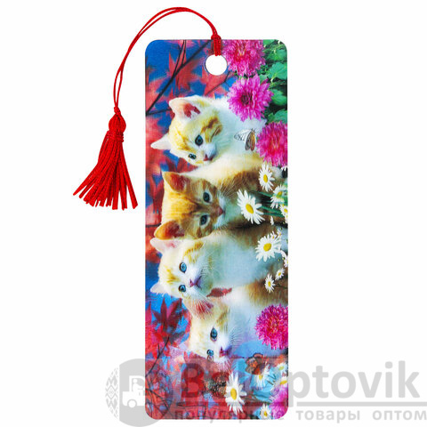 Закладка для книг 3D, BRAUBERG, объемная, "Котята", с декоративным шнурком-завязкой, 125762