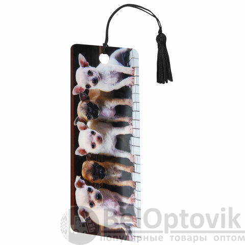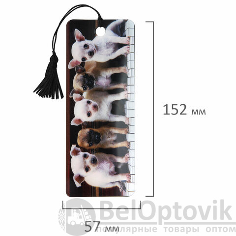 Закладка для книг с линейкой 3D-ОБЪЕМНАЯ BRAUBERG, "Милые щенки", с декоративным шнурком, 128098