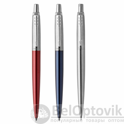 Подарочный набор PARKER "Jotter London Trio": шариковая ручка в корпусе красного цвета, гелевая ручка в синем корпусе и механический карандаш в серебряном цвете. Обе ручки и карандаш выполнены из нержавеющей стали.