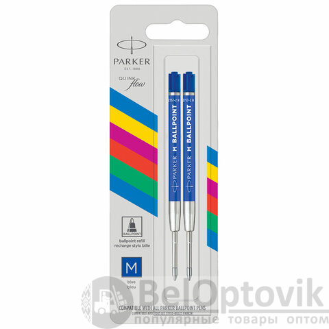 Стержень шариковый PARKER пластиковый, КОМПЛЕКТ 2 шт., блистер, 98 мм, узел 1 мм, синий, 2166544