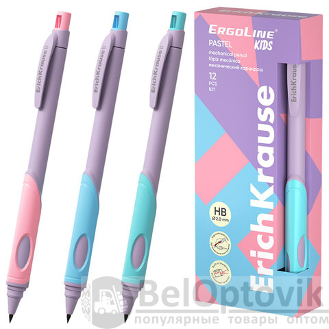 Карандаш механический 2 мм ERICH KRAUSE "ErgoLine Kids Pastel", HB, с точилкой, ассорти, 63833
