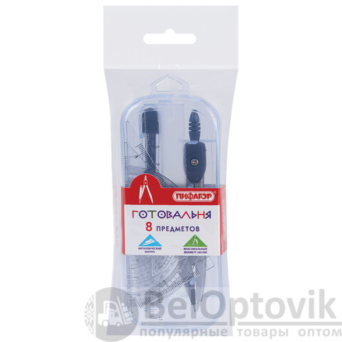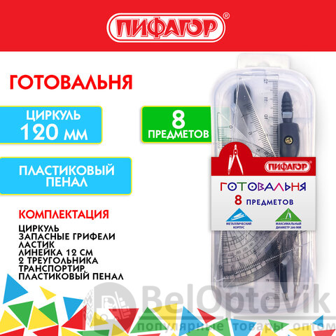 Металлическая готовальня ПИФАГОР предназначена для выполнения чертежных работ. Подойдет ученикам младших, средних и старших классов.