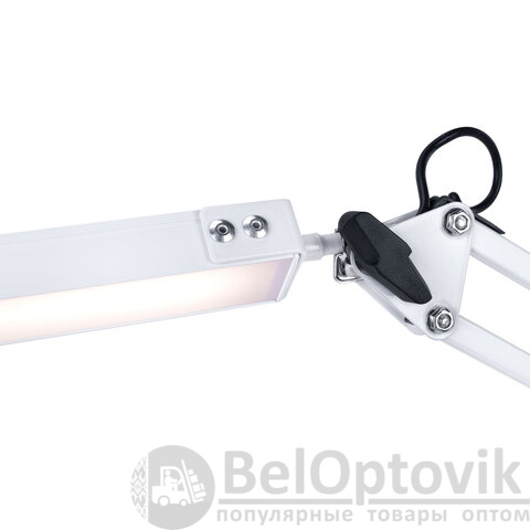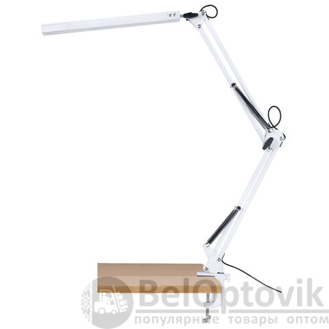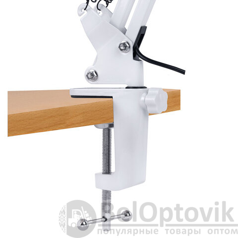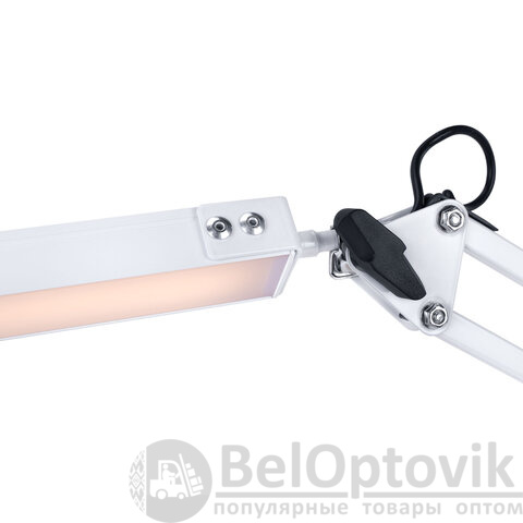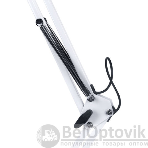 Металлический корпус придаёт конструкции прочность и устойчивость, а надёжное крепление на струбцине экономит место и позволяет легко зафиксировать лампу на столе, полке или любой другой поверхности.