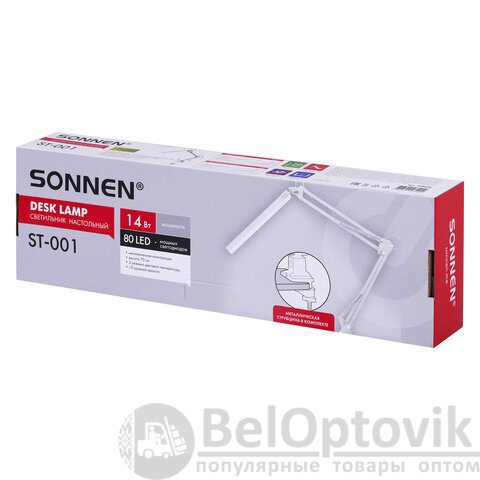 Cветодиодная лампа SONNEN ST-001 на струбцине сочетает в себе высокую мощность 14 Вт и продуманный функционал для комфортной работы в любых условиях. Благодаря 80 ярким диодам лампа обеспечивает равномерное, немерцающее освещение, которое не напрягает зрение даже при длительном использовании.