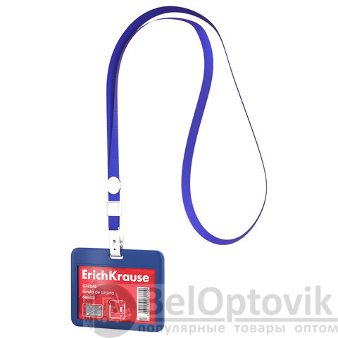 Бейдж горизонтальный ERICH KRAUSE (85х54 мм), корпус синий, цвет ленты синий, 63737