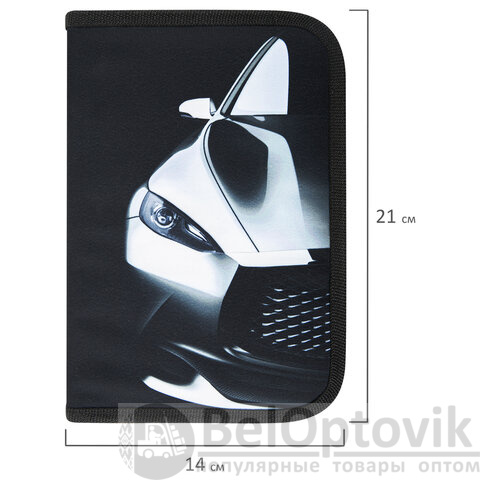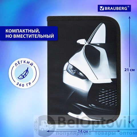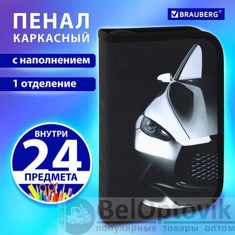 Пенал BRAUBERG с наполнением, 1 отделение, 1 откидная планка, 24 предмета, 21х14 см, "Fast car", 270724