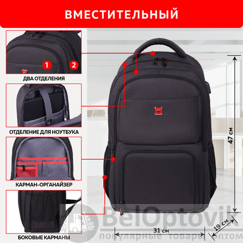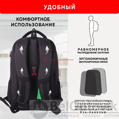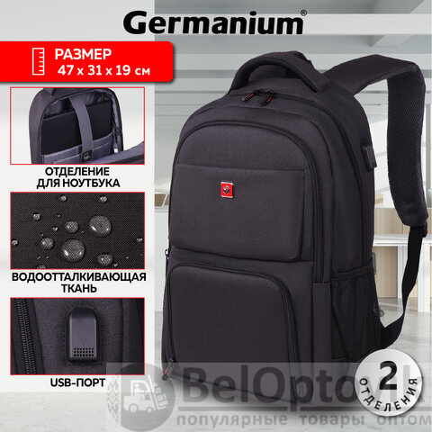 Рюкзак GERMANIUM UPGRADE универсальный, 2 отделения, отделение для ноутбука, USB-порт, UP-4, черный, 47х31х19 см, 271668