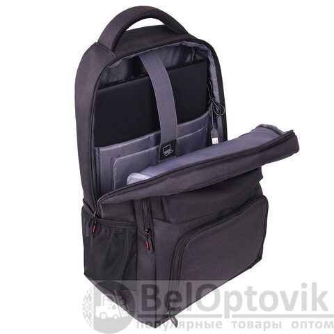 Важная деталь – это отделение для ноутбука с диагональю экрана до 15,6" с надежной эластичной лентой на липучке. Плотные стенки и дно защитят гаджет от механических повреждений. На внешней стороне находится карман для планшета.