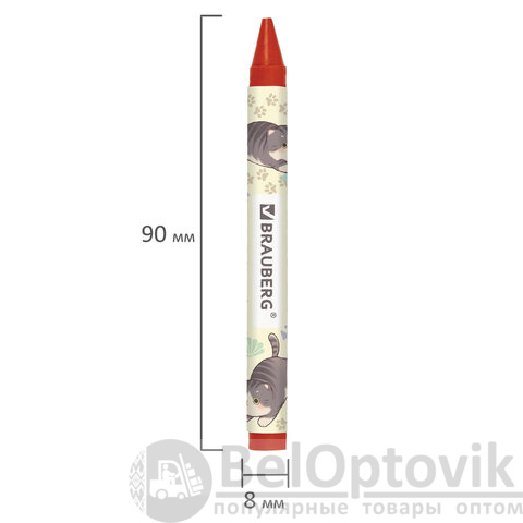 Каждый мелок завернут в бумажную этикетку, что предохраняет от загрязнений, снижает скольжение, увеличивает прочность. Восковые мелки упакованы в картонную коробку с европодвесом.