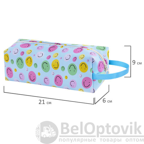 Выполнен из гибкого и прочного ПВХ материала с покрытием soft-touch. Яркая печать дизайна со всех сторон. Пенал имеет оптимальный размер 21х9х6 см для размещения в нем не только письменных принадлежностей, но и повседневных мелочей, косметики, аксессуаров. Ручка-тесьма, расположенная сбоку, делает пенал удобным для переноски. Удобно открывается и закрывается с помощью застежки-молнии, оснащенной металлическим бегунком.
