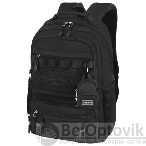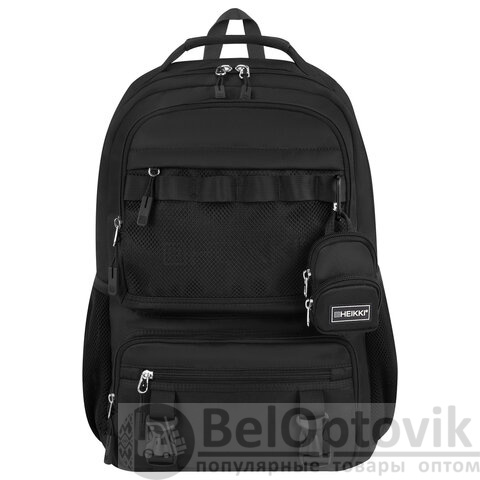 Рюкзак HEIKKI FUSION (ХЕЙКИ) универсальный, отделение для ноутбука, с КОШЕЛЬКОМ, черный, 44х31х14 см, 273864