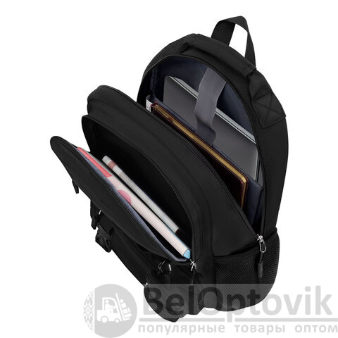Одно вместительное отделение и множество карманов позволят упорядоченно разложить большое количество вещей различных размеров, в зависимости от целей использования рюкзака. Важная деталь – это отделение для ноутбука с диагональю экрана до 15,6". Плотные стенки и дно защитят гаджет от механических повреждений, а эластичная лента на липучке надежно его зафиксирует. В основном отделении имеются также карман на молнии и карман-органайзер для удобного размещения как письменных принадлежностей, так и документов, аксессуаров и других личных вещей.