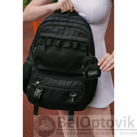 Рюкзак отличается множеством внешних карманов: 4 передних кармана на молнии различного размера, а также плотные боковые карманы из эластичной сетки, в которых легко разместить бутылочку, термос или зонт.