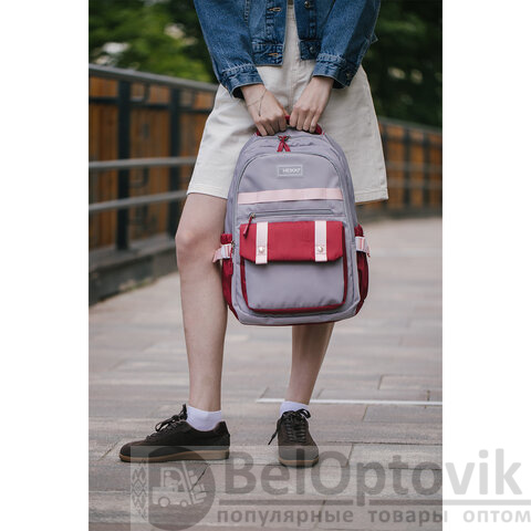 Рюкзак HEIKKI GOODLY (ХЕЙКИ) универсальный, 2 отделения, отделение для ноутбука, серый/красный, 46x33x18 см, 273869