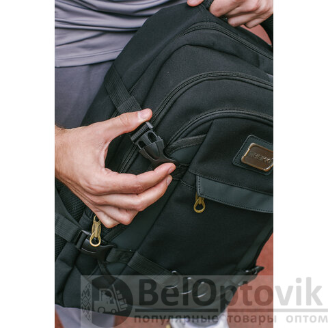 Боковые застежки-фастекс не только являются трендовыми декоративными элементами, но и позволяют корректировать объем рюкзака в зависимости от его наполненности. Нагрудный ремешок позволит снизить нагрузку на плечи, чем повысит удобство при носке.
