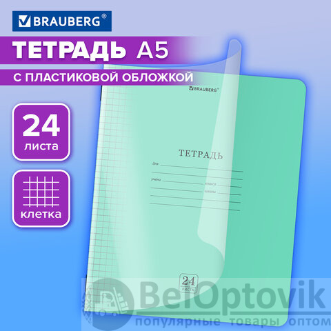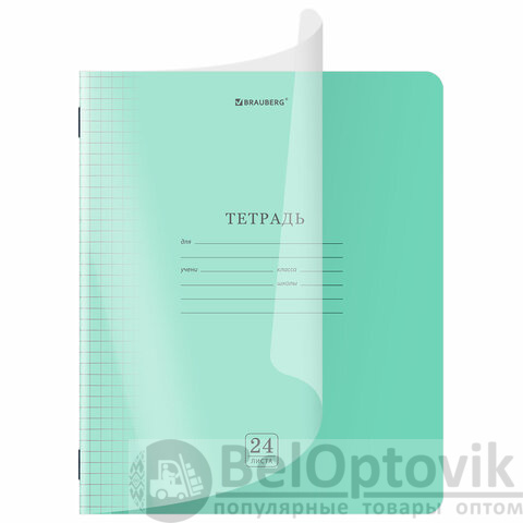 Тетрадь обложка пластик (прозрачный) 24 л,. клетка, BRAUBERG "Smart Cover", ЗЕЛЕНАЯ, 405034
