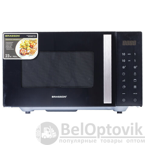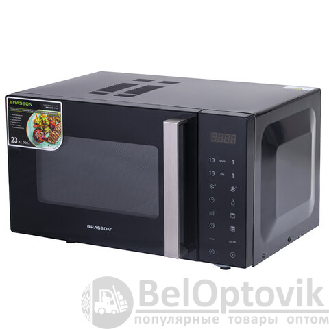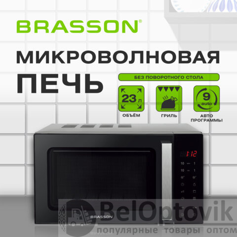 Микроволновая печь без поворотного стола BRASSON MW2390D-11GP, ГРИЛЬ, 9 ПРОГРАММ, 23 л, 900 Вт, сенсорное управление, черная, 454981