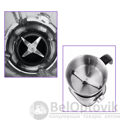 В комплекте идет измельчитель с чашей из нержавеющей стали объемом 600 мл, который идеально подходит для перемалывания твердых продуктов: кофейных зерен, сахара, печенья, сухарей, зелени, овощей, фруктов, мяса и даже колки льда. Два 4-лезвийных блока ножей из нержавеющей стали с оптимальной формой и заточкой справляются с любыми ингредиентами, обеспечивая идеальный результат.