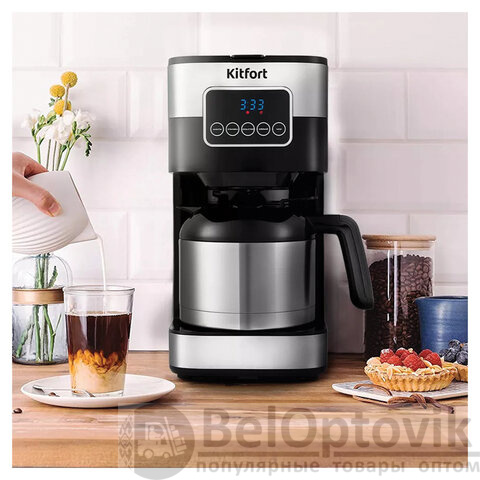 Выберите KITFORT KT-752 – капельную кофеварку с термосом, автозапуском и многоразовым фильтром! Идеально подходит для дома и офиса. Наслаждайтесь горячим кофе до двух часов без подогрева. Закажите уже сегодня и начните свой день с настоящего аромата кофе!