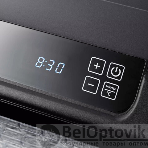 Температуру сушки можно регулировать от 35 до 70 °С с шагом 5 °С, а таймер с настройкой до 19,5 часов позволяет точно контролировать процесс. Прозрачная дверца из закаленного стекла дает возможность следить за ходом сушки, не открывая прибор. Мощность 500 Вт и большая площадь поддонов (30х32 см) делают сушилку эффективной даже для крупных продуктов, а компактные размеры (450х345х333 мм) и стильный минималистичный дизайн позволяют изделию гармонично вписатся в любую кухню.