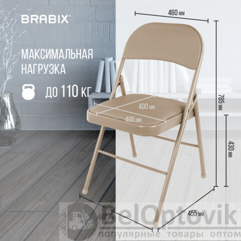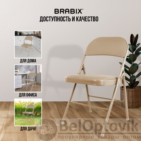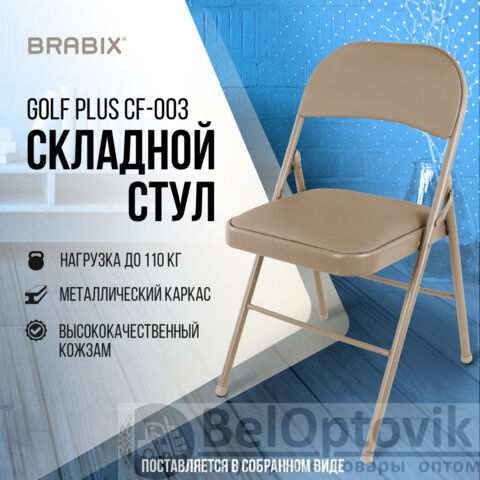 Стул складной BRABIX "Golf Plus CF-003 Комфорт", бежевый каркас, кожзам бежевый, 531567