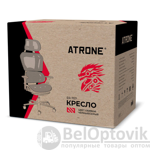 Кресло ATRONE "Optimus ER-707", адаптивный механизм со слайдером, сетка, черный/серый, 532967