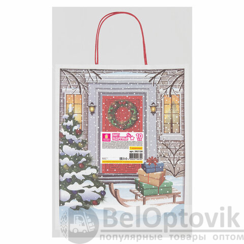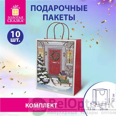Пакет подарочный КОМПЛЕКТ 10 штук новогодний 26x32x13 см, "Сочельник", ЗОЛОТАЯ СКАЗКА, 592130