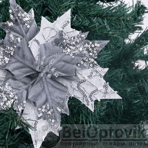 Серебристые цветы создают элегантную и гармоничную композицию, которая будет великолепно смотреться на вашей елке. Украшения легко и надежно фиксируются в ветвях, не соскальзывая и не теряясь. Они добавят дому или офису нотку роскоши и изысканности.