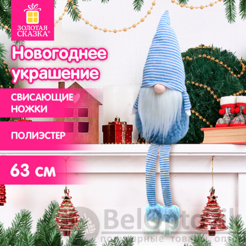 Украшение новогоднее интерьерное, 63 см, "Гном в костюме", полиэстер, пенопласт, ЗОЛОТАЯ СКАЗКА, 592568