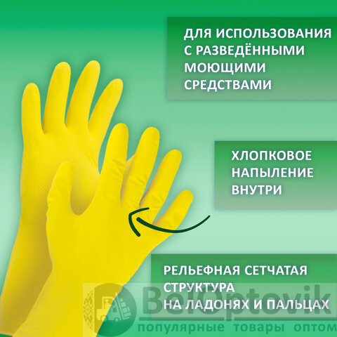Хозяйственные латексные перчатки LAIMA защищают руки от воздействия грязи, влаги, моющих и чистящих средств при любых бытовых и хозяйственных работах: мытьё посуды, стирка белья, уборка, садоводческая работа.