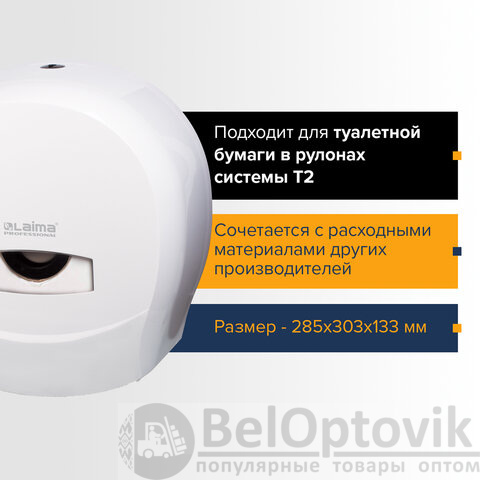 Диспенсер для туалетной бумаги LAIMA PROFESSIONAL CLASSIC (Система T2), малый, белый, ABS-пластик, 601427
