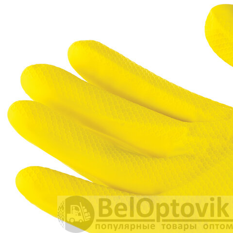 Они изготовлены из прочного латексного материала, что гарантирует защиту рук от механических внешних повреждений. Классический размер M подойдет на руку стандартного размера. В комплекте - 1 пара. Внутреннее хлопчатобумажное напыление обеспечивает гипоаллергенность и гигроскопичность. Рельефная поверхность препятствует скольжению предметов. Тип манжеты: закатанный край. Нельзя использовать при работе с растворителями и электрическим током. Данные перчатки многоразовые. Цвет - желтый.