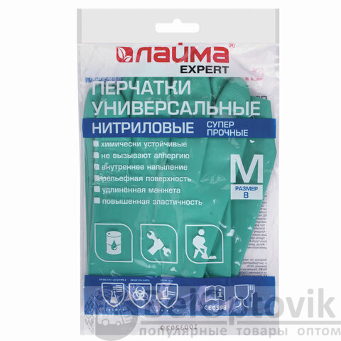 Перчатки нитриловые LAIMA EXPERT НИТРИЛ, 70 г/пара, химически устойчивые, гипоаллергенные, размер 8, М (средний), 605001
