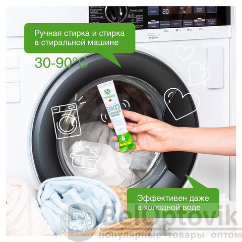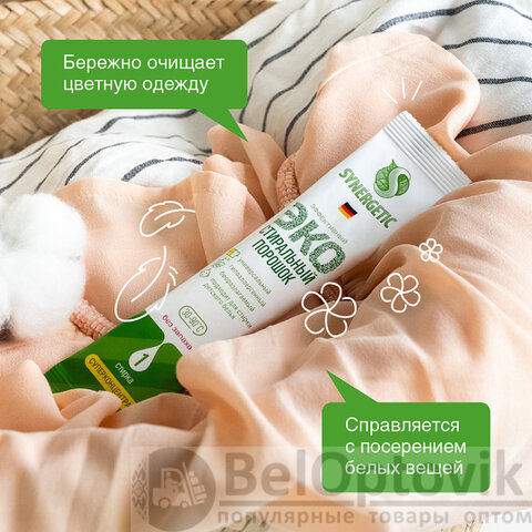 Стиральный порошок в стиках от SYNERGETIC – это простое и удобное средство. 1 стик – обычная стирка, 2 стика – серьезные загрязнения.
