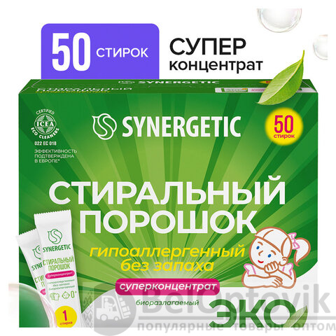 Стиральный порошок автомат 50 стиков SYNERGETIC, 50 стирок, концентрат, биоразлагаемый, 109005