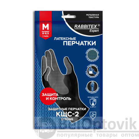 Перчатки латексные КЩС-2 STRONG химически устойчивые, тактильные, цвет чёрный, размер 8-8,5 (M), RABBITEX EXPERT, 609267