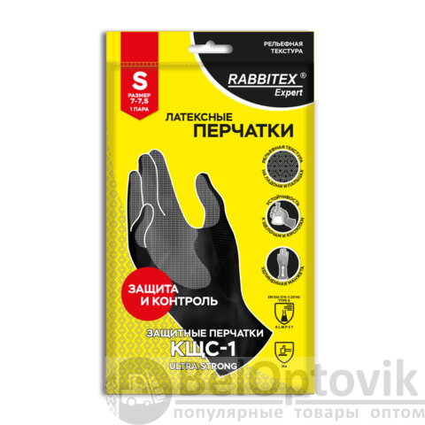 Перчатки латексные КЩС-1 ULTRA STRONG химически устойчивые, двухслойные, цвет чёрный, размер 7-7,5 (S), RABBITEX EXPERT, 609270