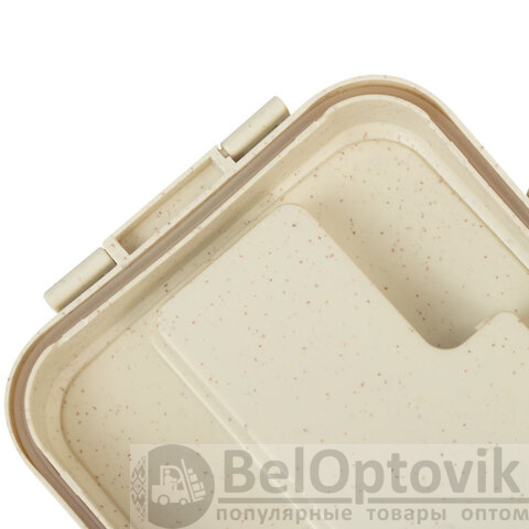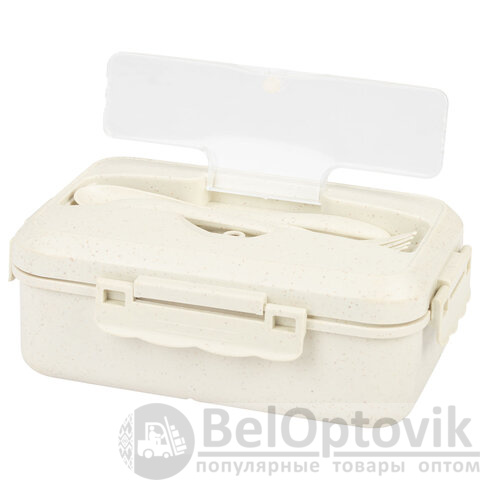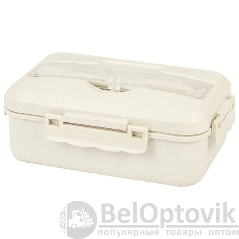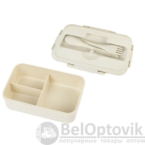 Ланч-бокс контейнер, 1 секция, 3 отделения, 1,4 л, ложка, вилка, 8х21х14 см, бежевый, JOYLUX ECO, 609346