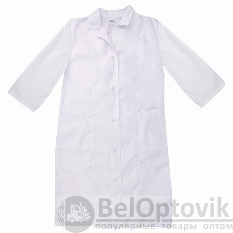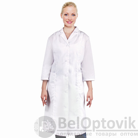 Халат медицинский женский белый, рукав 3/4, тиси, размер 52-54, рост 158-164, плотность ткани 120 г/м2, 610748