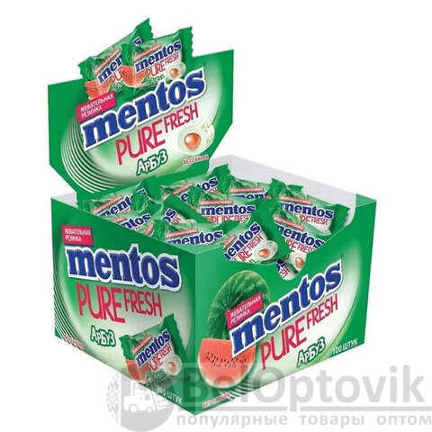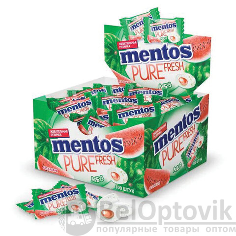 Жевательная резинка MENTOS (Ментос) "Pure White" со вкусом арбуза, 100 мини-упаковок по 2 г