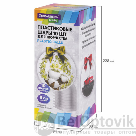 Пластиковые шары для поделок BRAUBERG HOBBY предназначены для создания уникальных новогодних украшений, красочных поделок и аксессуаров для дома.