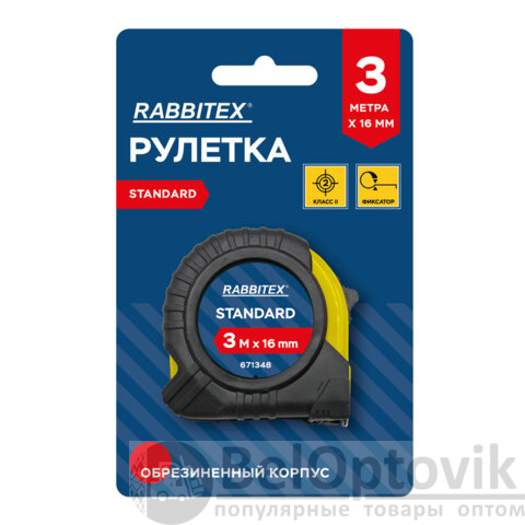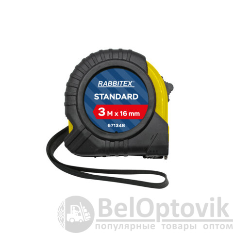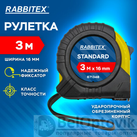 Рулетка измерительная 3м х 16мм, обрезиненный корпус, с фиксатором, RABBITEX Standard, 671348
