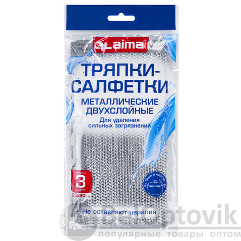 Тряпки-салфетки металлизированный эффект скрабер, 20х20 см, КОМПЛЕКТ 3 штуки, ДВУХСЛОЙНЫЕ, посуда, уборка, LAIMA 700063