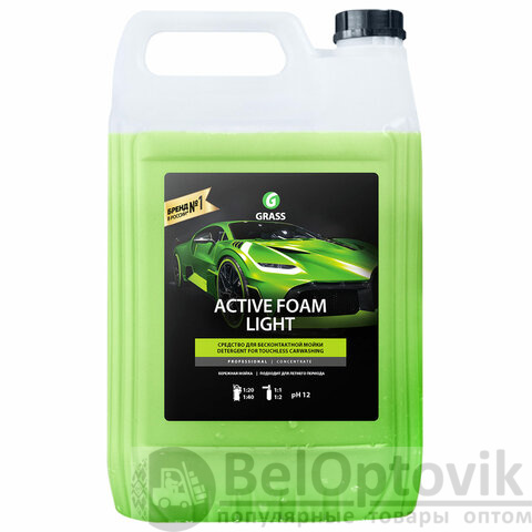 Концентрированное моющее средство GRASS ACTIVE FOAM LIGHT для бесконтактной мойки легкового и грузового транспорта. Эффективно удаляет дорожную грязь, пыль, масло, следы от насекомых.