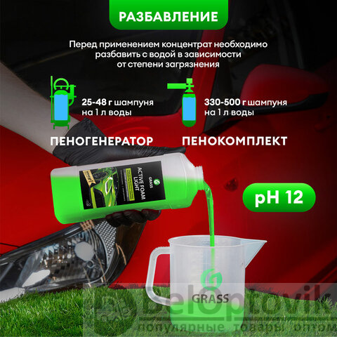 Автошампунь с активной пеной, 1 кг, GRASS ACTIVE FOAM LIGHT легкосмываемый, концентрат, 132100