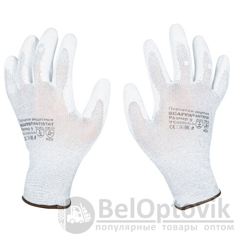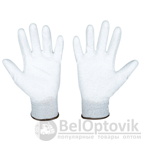 Антистатические нейлоновые перчатки серого цвета с вплетением карбоновых нитей и полиуретановым покрытием. Благодаря карбоновой нити перчатка имеет антистатические свойства, рассеивая электрический заряд. Тонкое полиуретановое покрытие одновременно очень прочное и чувствительное, а анатомическая форма перчатки снижает усталость рук при работе.