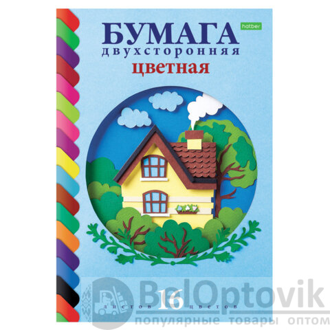 Цветная бумага А4 2-сторонняя газетная, 16 листов, 16 цветов, на скобе, HATBER ECO, 200х270 мм, "Домик в лесу", 059756, 16Бц4_20828
